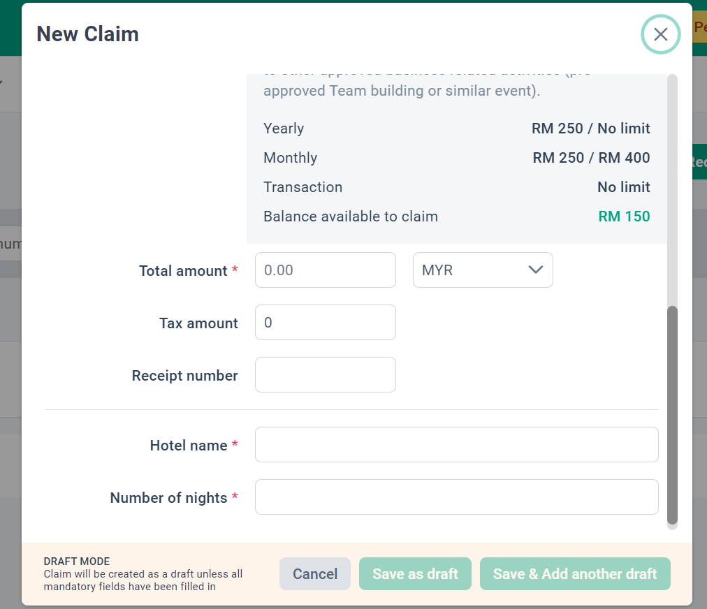 - Click Save & Add another draft : to save current draft claim and create a new draft