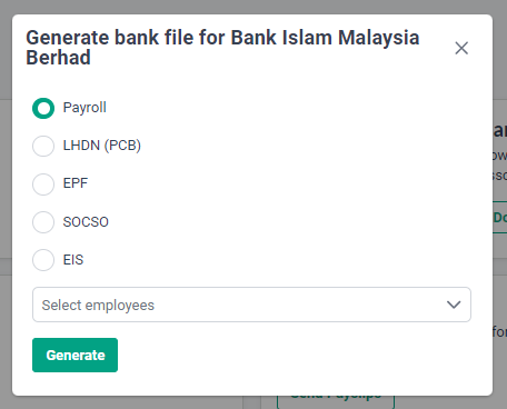 4. At the "Generate bank file for Bank Islam Malaysia Berhad" pop-up window :
