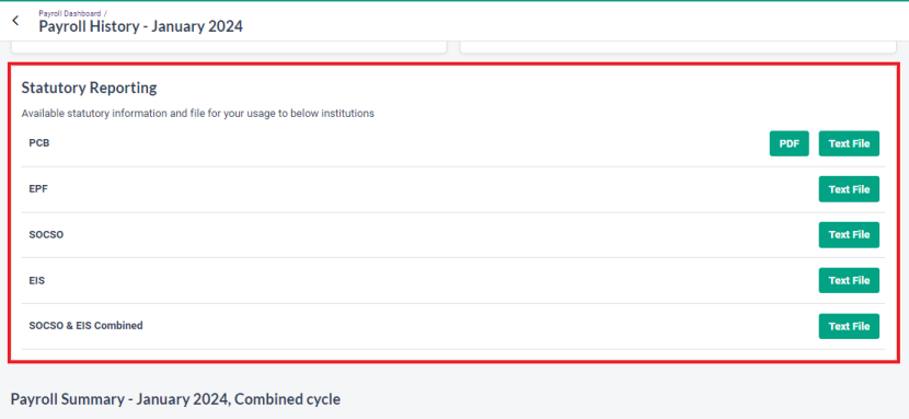 2) Once you have downloaded the text files from the system, you will need to proceed to upload these files at the Statutory Portals directly (KWSP/LHDN portals etc.)