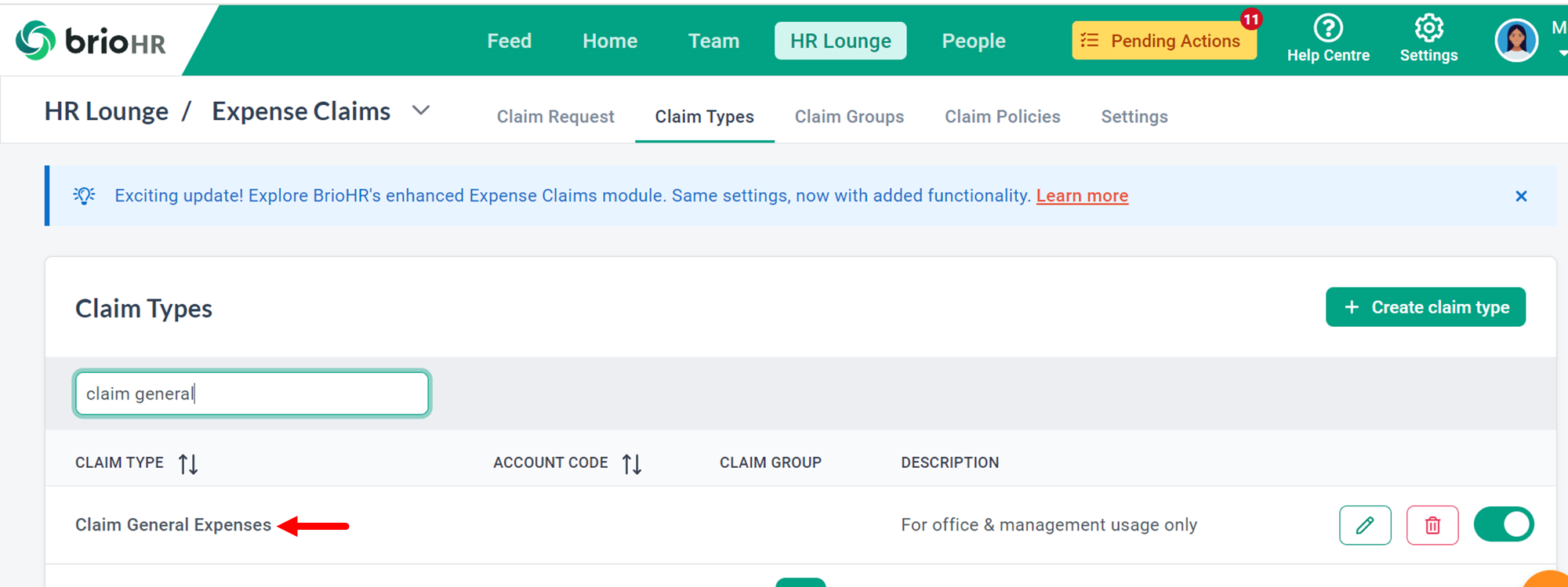 As a HR, you have created a new claim type at the Expense Claims module section.
