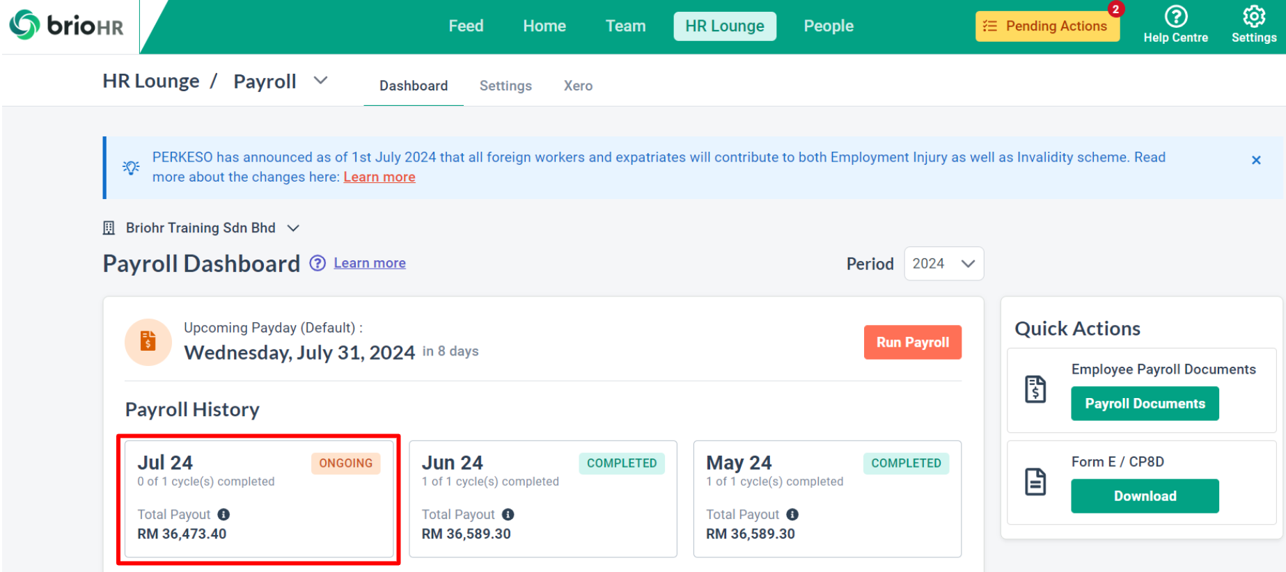2. Click on the ongoing payroll month