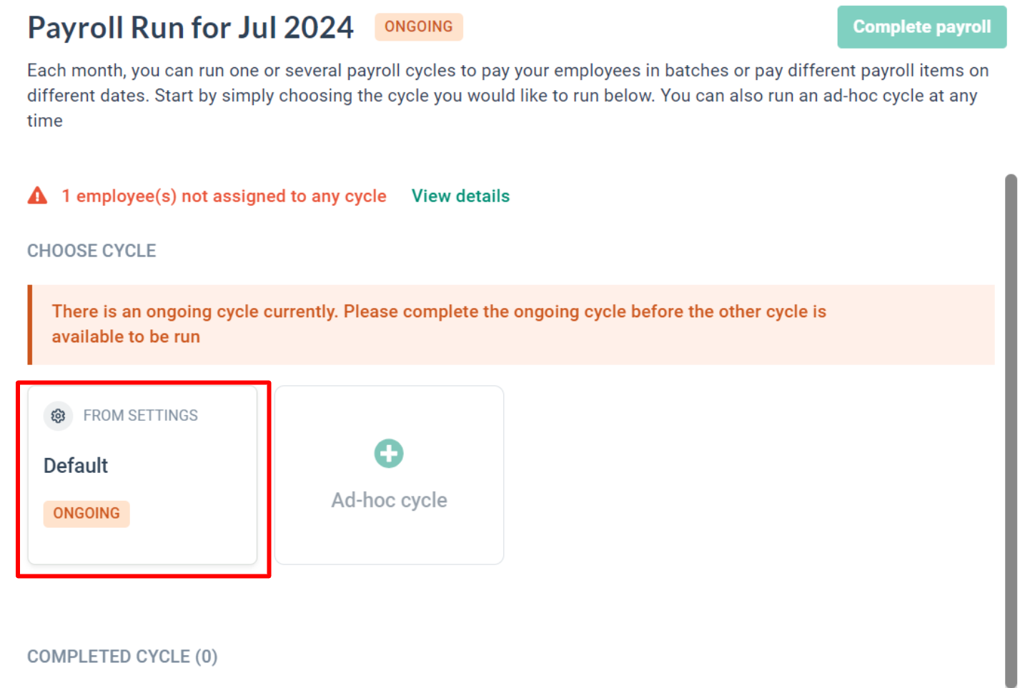 3. Click on the ongoing payroll cycle