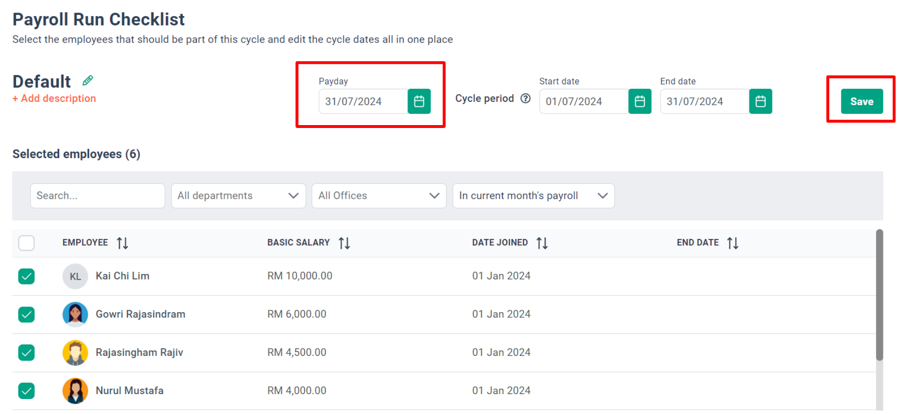 Occasionally, we may need to adjust the payday to process salary payments earlier or later than the initially selected payday. To accommodate this, we can modify the payday even after the payroll cycle has been run, ensuring that the salary payment aligns with the desired date.