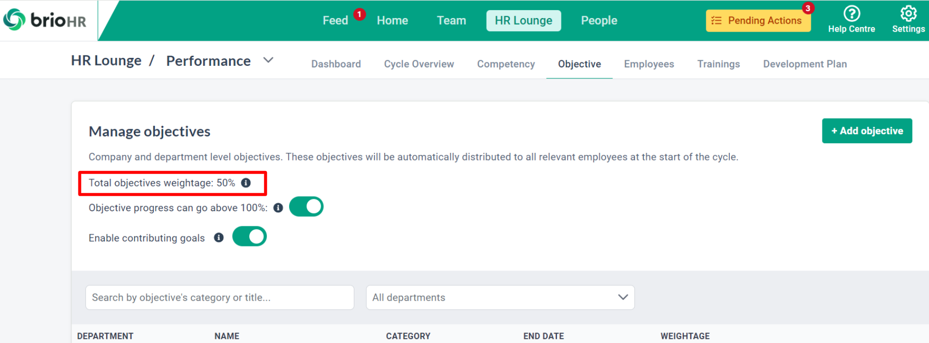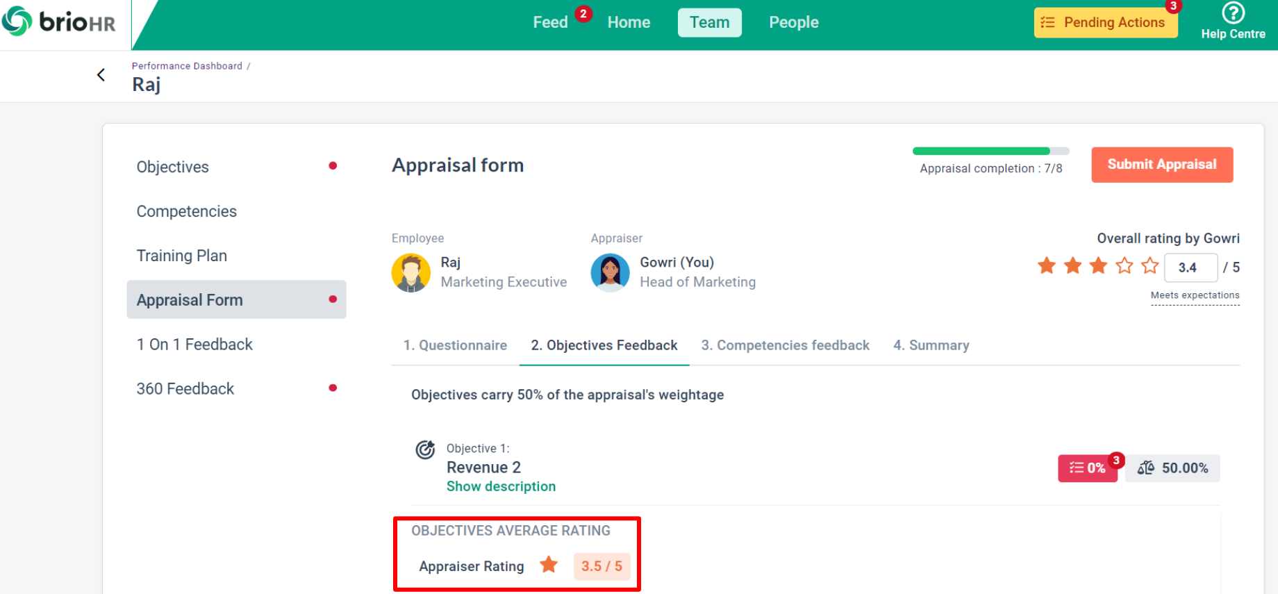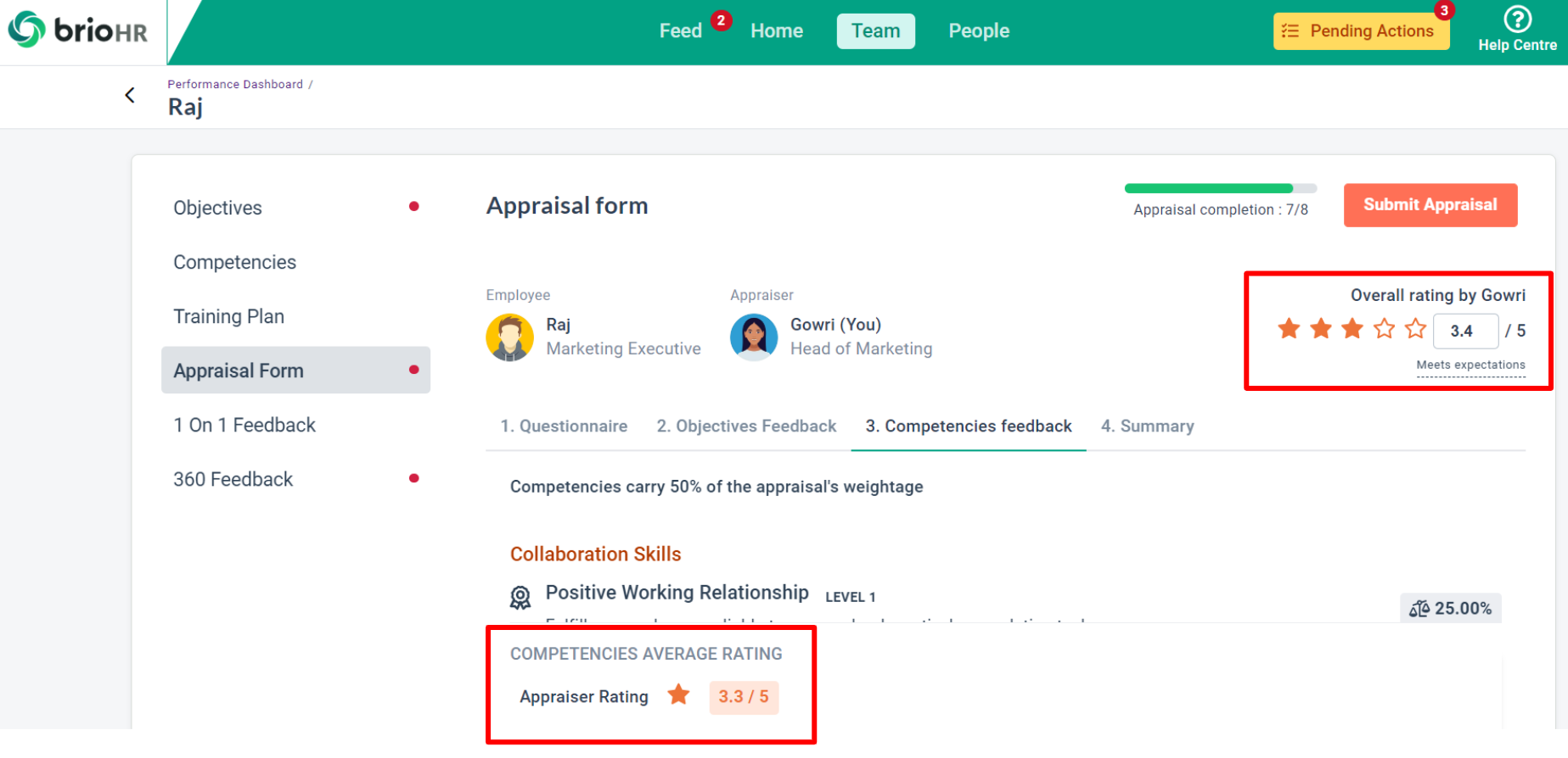 Example screenshots below on where to find the Weightage of Competencies/Objectives, Average Rating of Competencies/Objectives and Overall Rating.